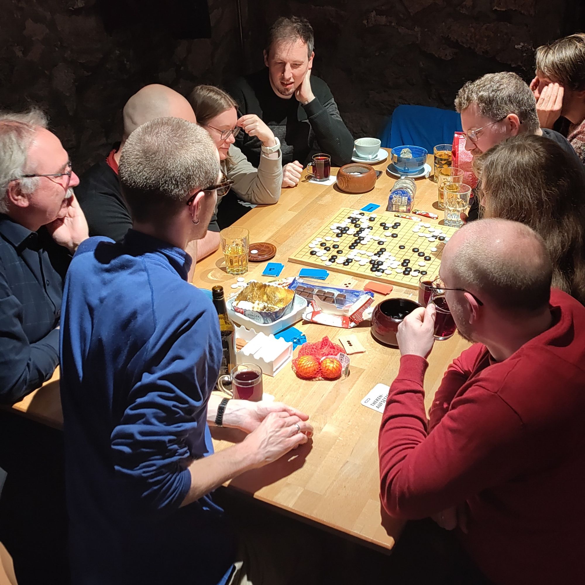 Am 15. Dezember trafen sich die Hallenser Go-Spieler:innen zur traditionellen Pokergo-Runde. Bei Glühwein, Apfelschorle und reichlich Süßigkeiten wurde das Go-Jahr 2025 in geselliger Runde abgeschlossen.